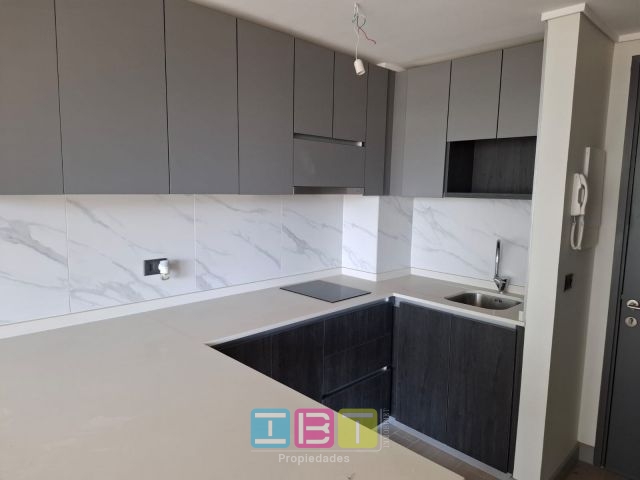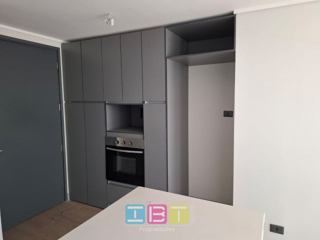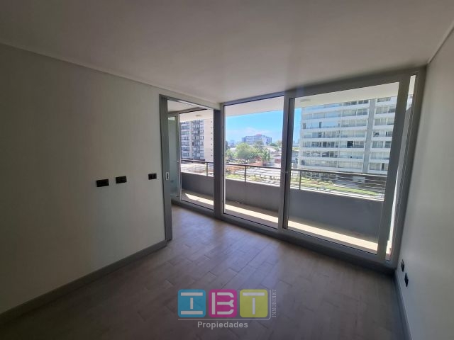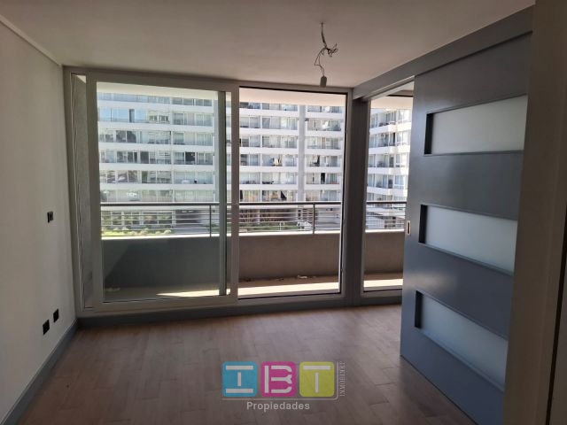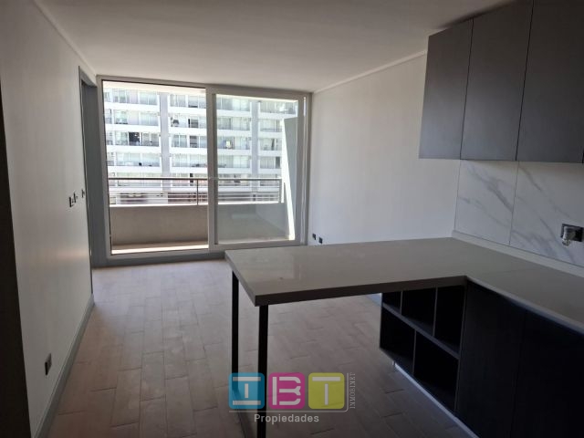 Disponible, condominio, nuevo. Oriente, cuarto piso. Recibos con salida a terraza, dormitorio con closets y salida a terraza, baño completo, conexión para lavadora, cocina americana equipada con encimera, horno, campana eléctrico, ventanas termopanel, citófono, bodega. Piscina, gimnasio, conserjería 24x7, jardines, sala de juegos de niños, lounge, jardines.